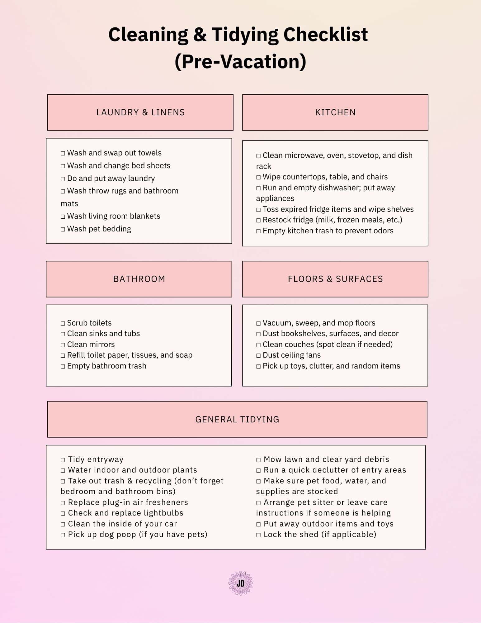 Leave the Mess Behind: Pre-Vacation Cleaning & Prep Checklist (Free Download)